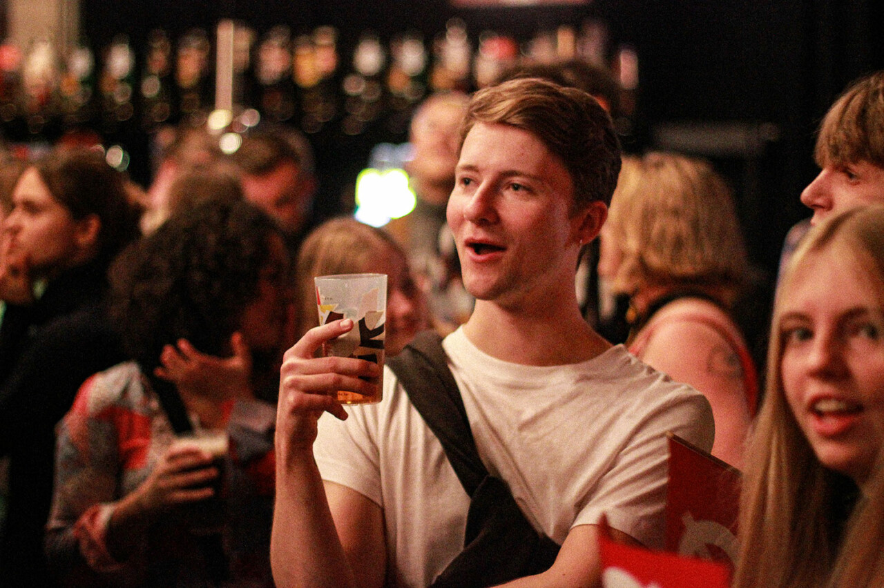 Bagefter henter han endnu en fadøl i baren. Valgstederne lukkede for en lille halv time siden.