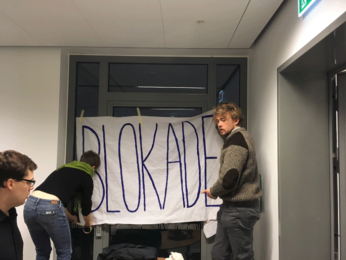 Det er ikke kun studerende, der støtter op om blokaden. I løbet af morgenen stikker flere ansatte hovedet ind ad døren og udbryder ting som »fedt, I gør det« og »jeg håber, det nytter noget«.