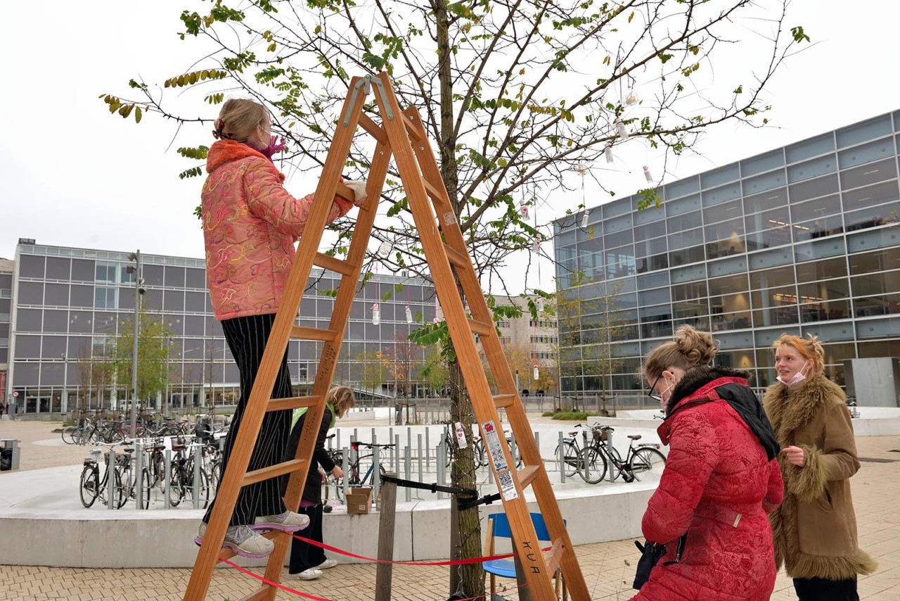 Et udendørs ønsketræ blev der også plads til. Studerende skulle skrive en seddel med deres ønsker for fremtiden og nuværende bekymringer om corona.