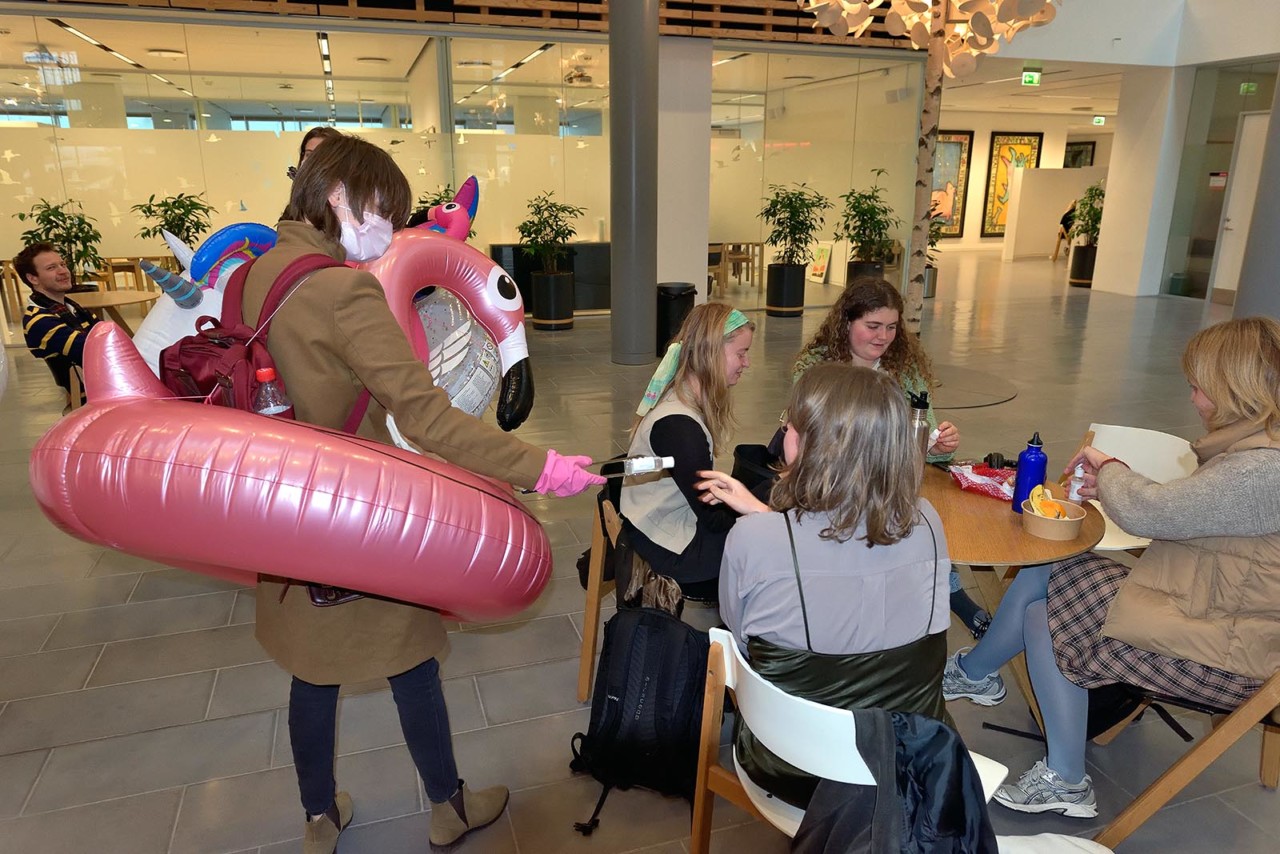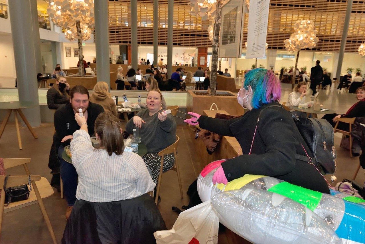 Ønsketræer, et minigolfspil og nogle – meget farverige – baderinge var nogle af de virkemidler, som et hold studerende fra Teater og Performancestudier ved Københavns Universitet havde valgt at tage i brug for at få deres medstuderende i tale.