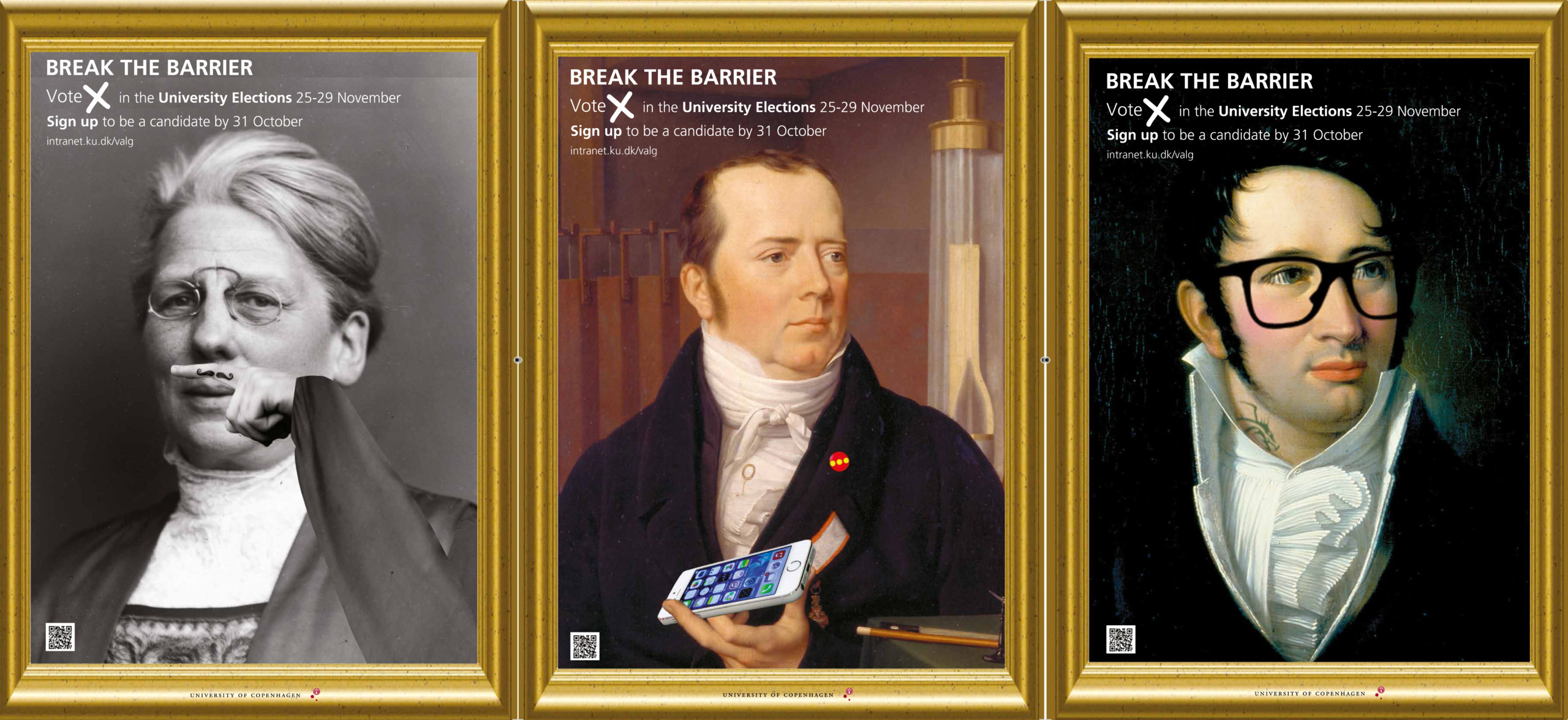 På de plakater vi har sat op for at reklamere for universitetsvalget, har vi valgt at bruge sloganet Break the Barrier – spræng rammerne. Det er ikke en opfordring til revolution, men derimod en stilfærdig henvisning til, at det er muligt at rykke noget, hvis man vil være med: at sætte sit fingeraftryk i et råd eller et nævn på vegne af medstuderende eller kolleger og via valget at give en retning via den elektroniske stemmeseddel.