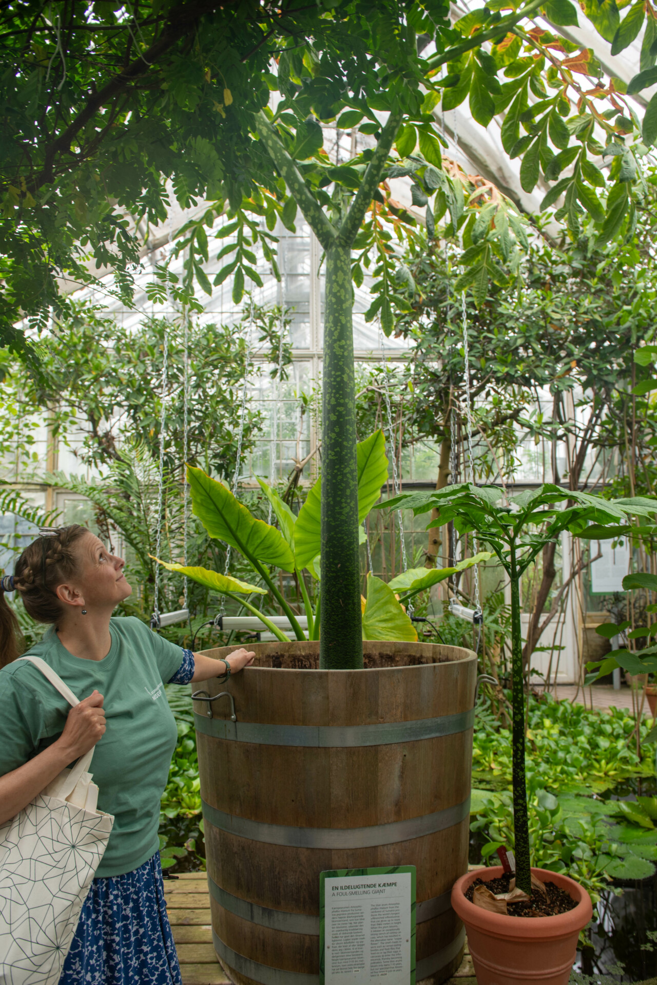 Og så byder Palmehuset på en af havens, ifølge Mia Lindegaard Pedersen, mest særlige planter: Amorphophallus titanum. I Mangrovehusets varme, fugtige luft troner den særlige plantes flere meter høje stængel sig op.