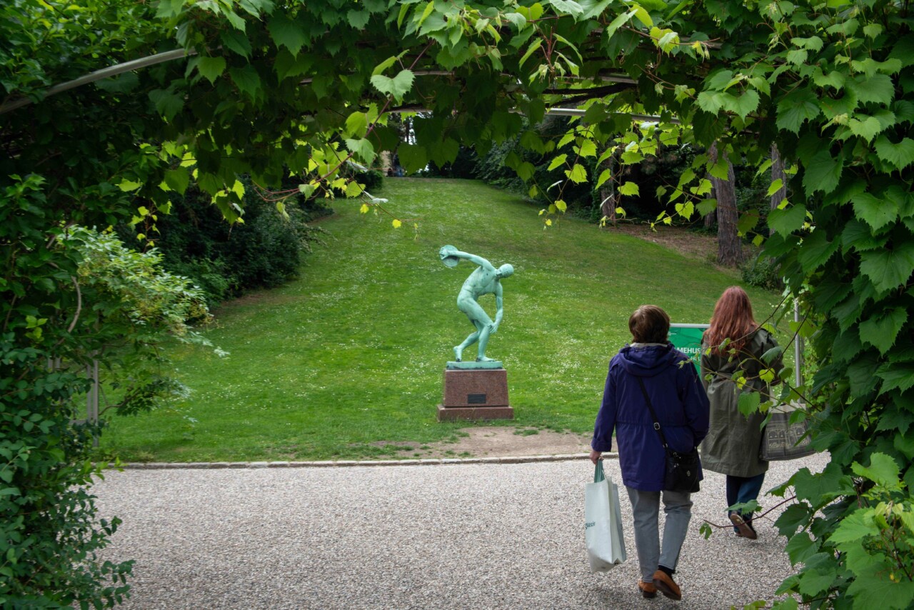 »Nu er vi i gang med at renovere Palmehus-komplekset og stisystemerne i haven. Og vi har fået en ny visuel identitet. I sidste uge fik vi nye t-shirts,« siger rundviseren og viser stolt logoet frem.
