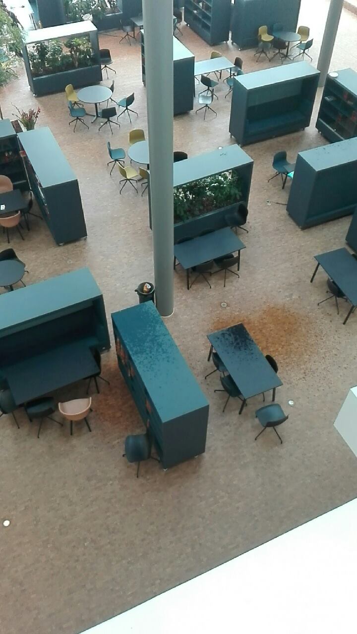 »Der var væsentlig risiko for at personer, bøger eller computere var blevet våde, da vinduerne er placeret over siddepladser, trappe og reoler,« skriver han i en mail til Uniavisen og tilføjer, at han ellers ikke er særlig kritisk over for flytningen.