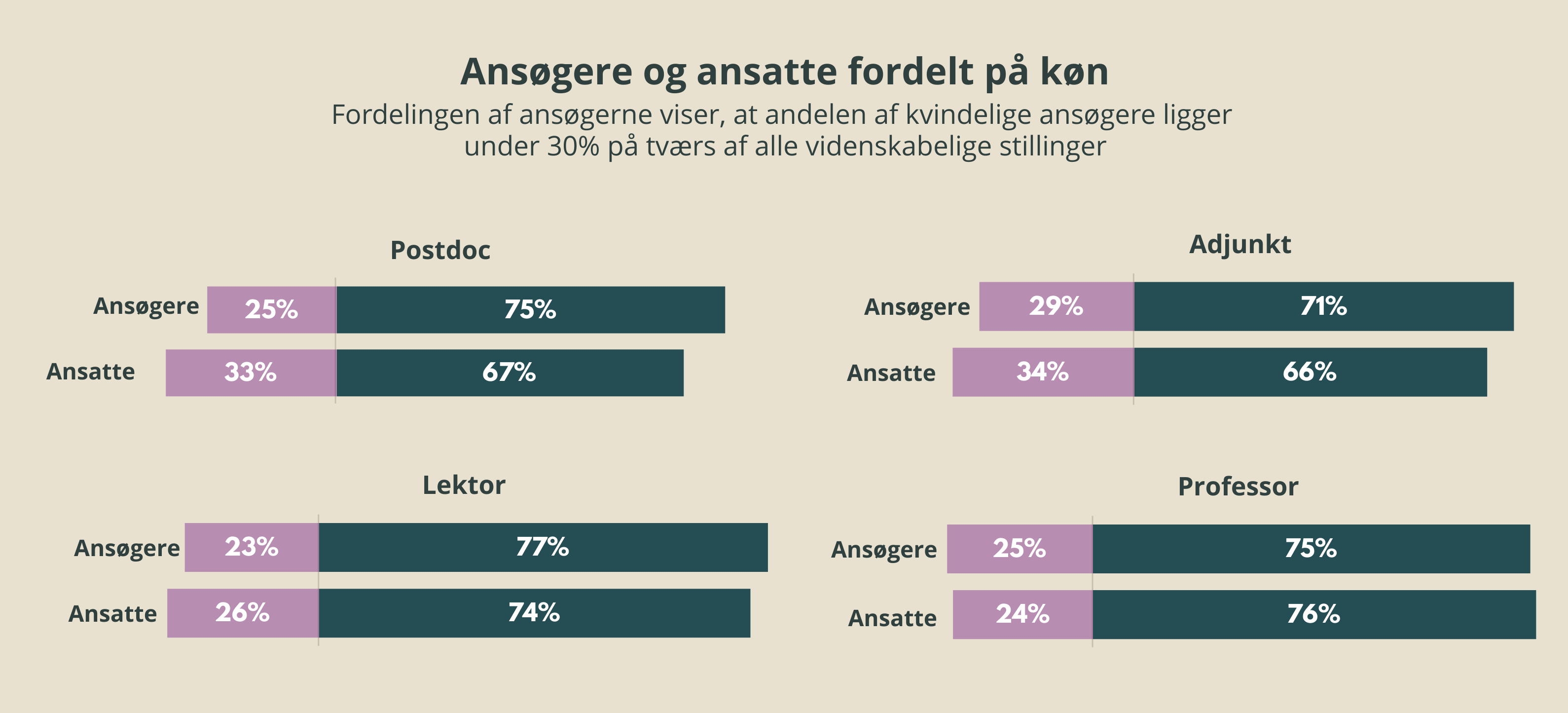 Det viser rapporten fra SCIENCE, som ser på stillingstyperne professor, lektor, adjunkt og postdoc i perioden 2015-2019, og som blandt andet tager fat på kønsforskelle i rekrutteringsproces, karriereforløb og bevillinger.