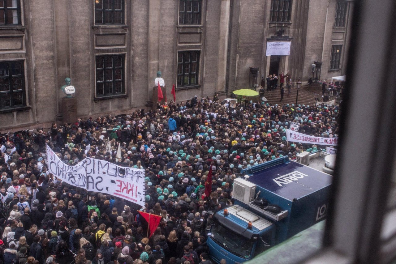 Blokeringer, stormøder og mindre demonstrationer var en del af hverdagen på KU i foråret og efteråret 2013, og i november viste landets studerende for alvor tænder ved en stordemonstration i København.
