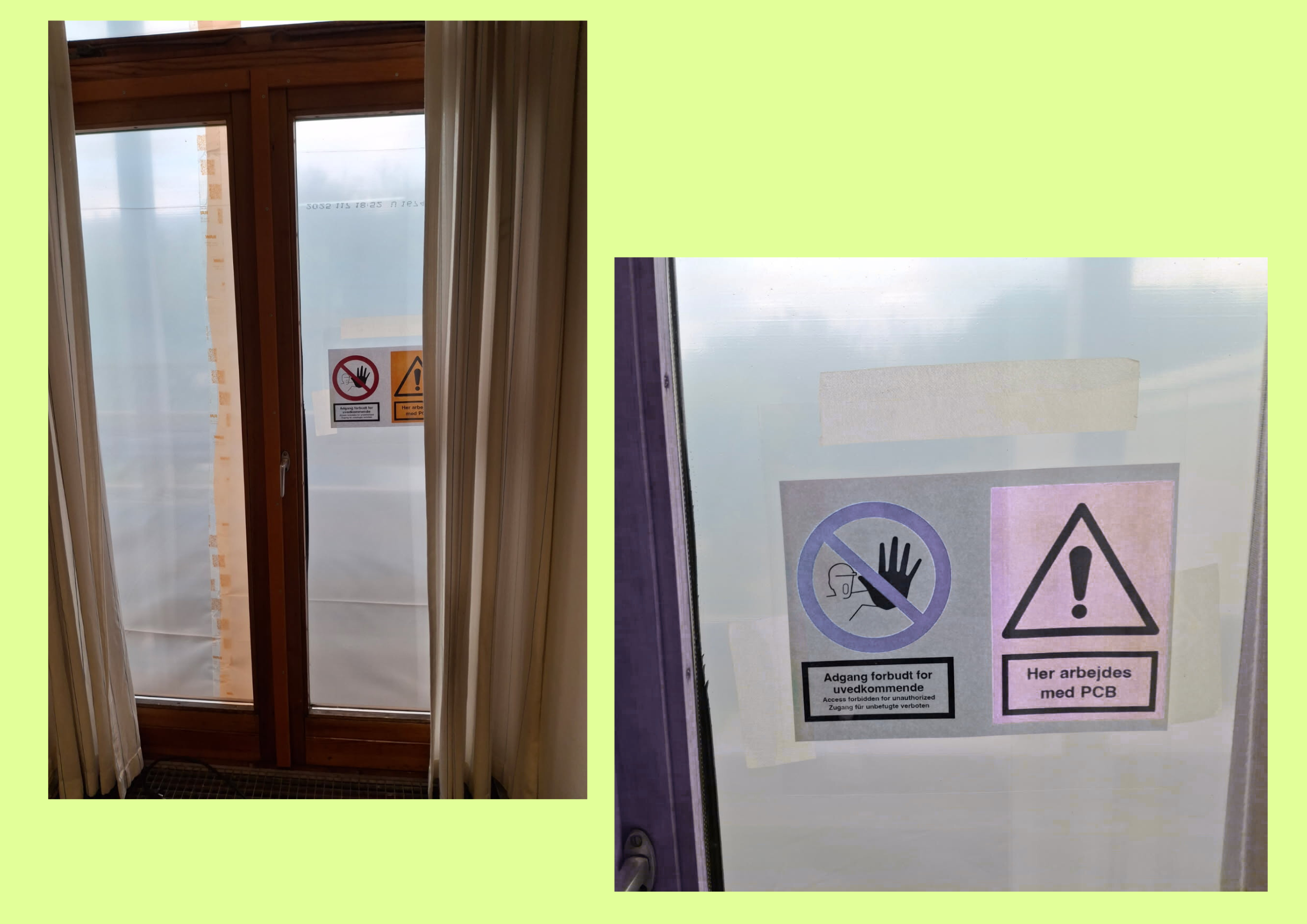 Bygningens betonfacade skal renoveres, og da målinger viste det giftige stof PCB i betonen, skulle der dækkes af, når der blev boret, fortæller arbejdsmiljørepræsentant på PLEN Augusta Szameitat.