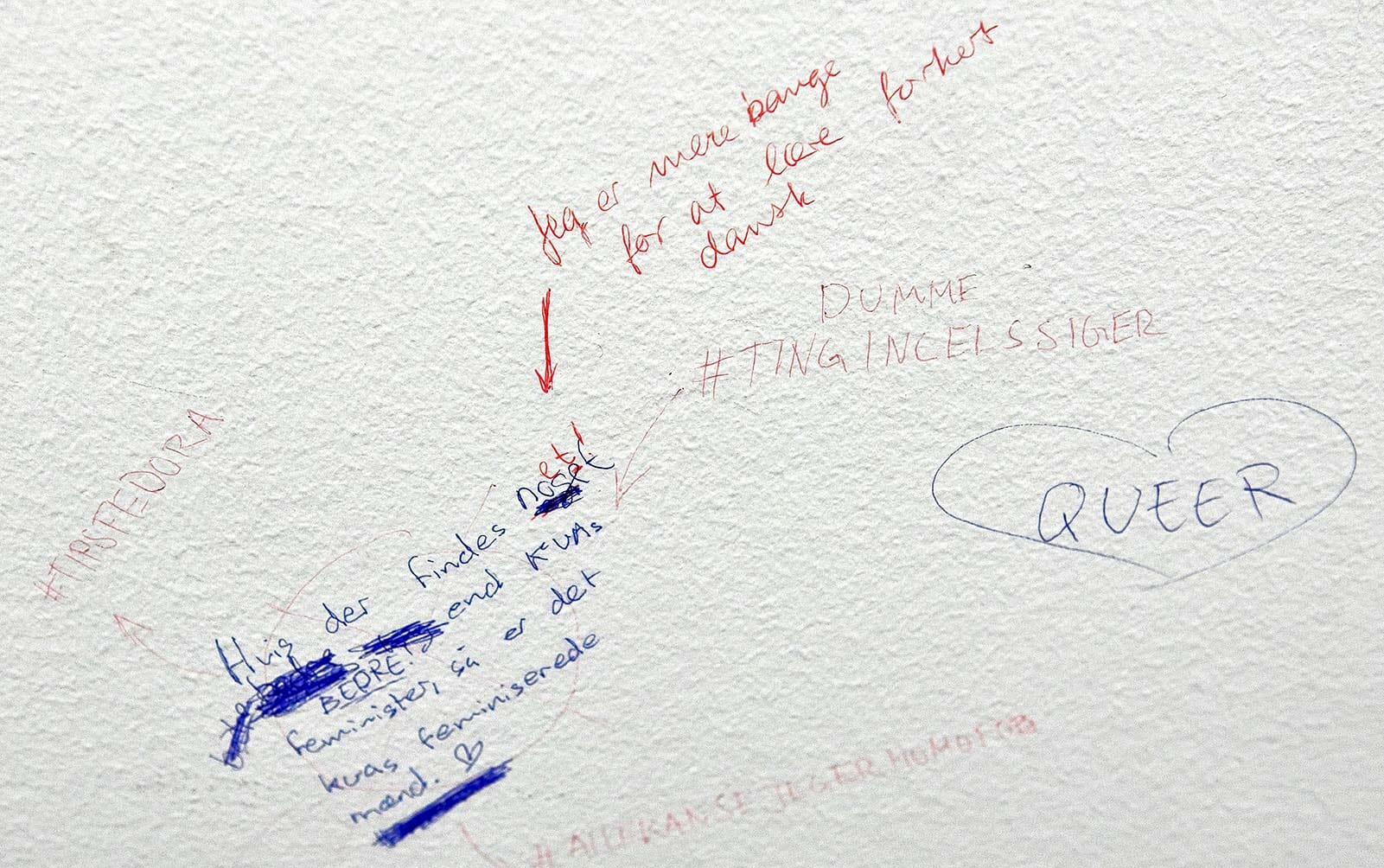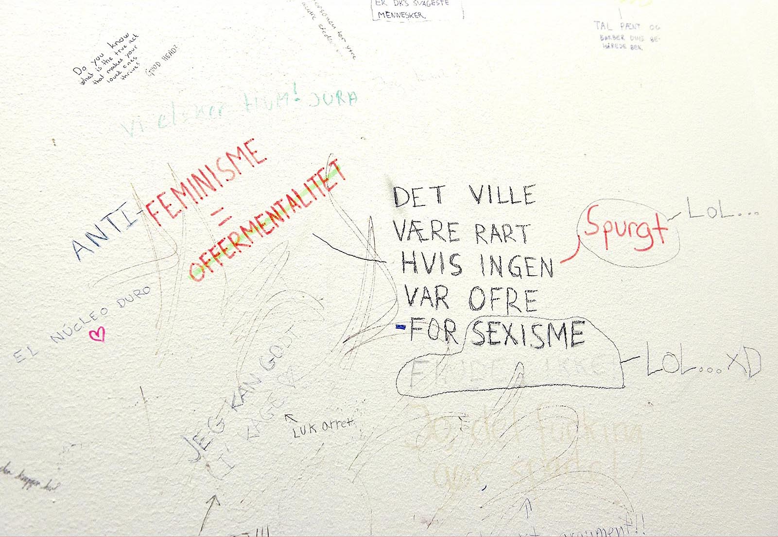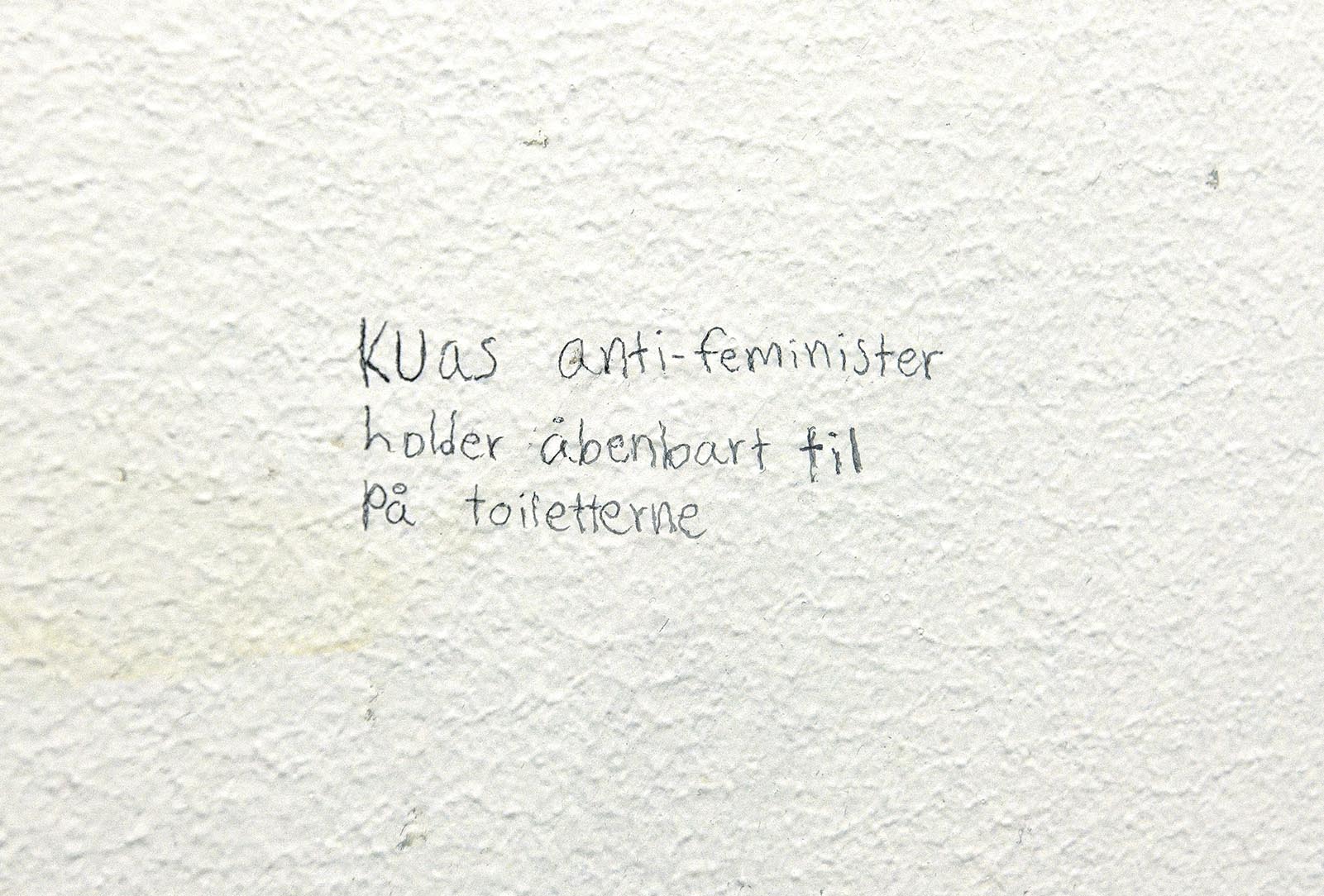 Sådan skriver toiletgraffitien sig ind i flere af de politiske debatter, der – ikke mindst på Københavns Universitet – fylder meget for tiden.