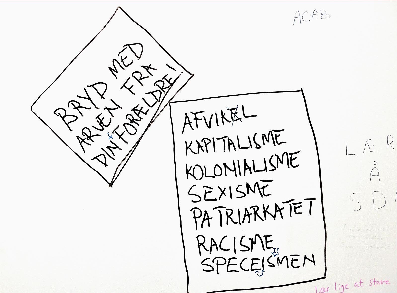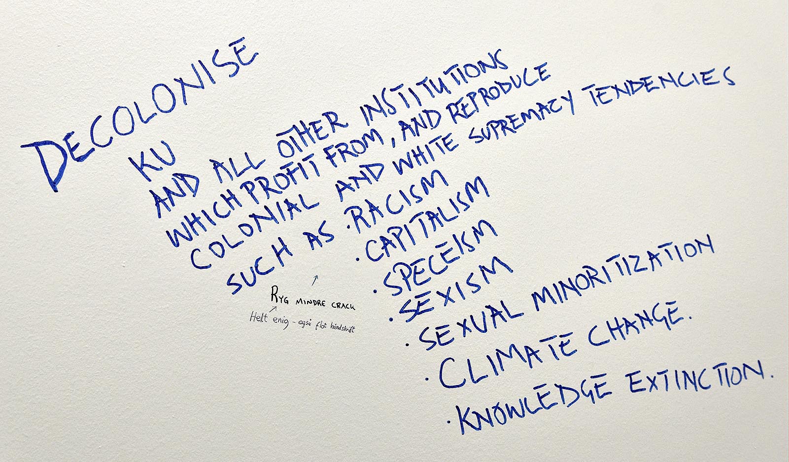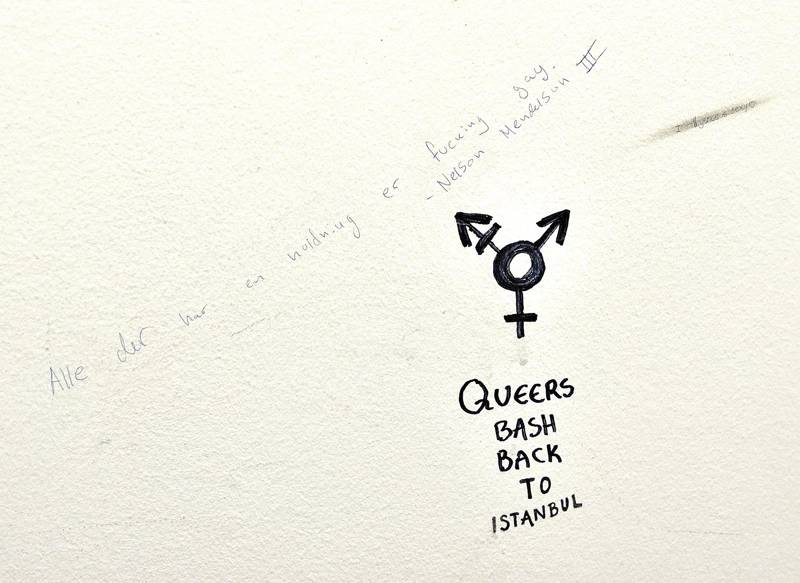 Sådan skriver toiletgraffitien sig ind i flere af de politiske debatter, der – ikke mindst på Københavns Universitet – fylder meget for tiden.