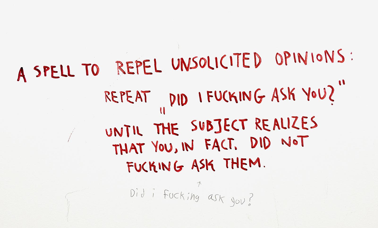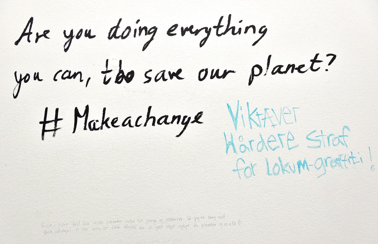 »Noget af graffitien er lidt infantil, men andet rammer virkelig hovedet på sømmet. Det er sjovt at finde den bevidsthed ude på toiletterne. Det er jo tidsånden, som bliver afspejlet,« siger han. »Alle de her ting om, hvordan underviserne skal tiltale de studerende og så videre – der er en eller anden form for tråd i det, der står, og det, der bliver sagt, og den mentalitet og kultur, der er herude på KUA.«