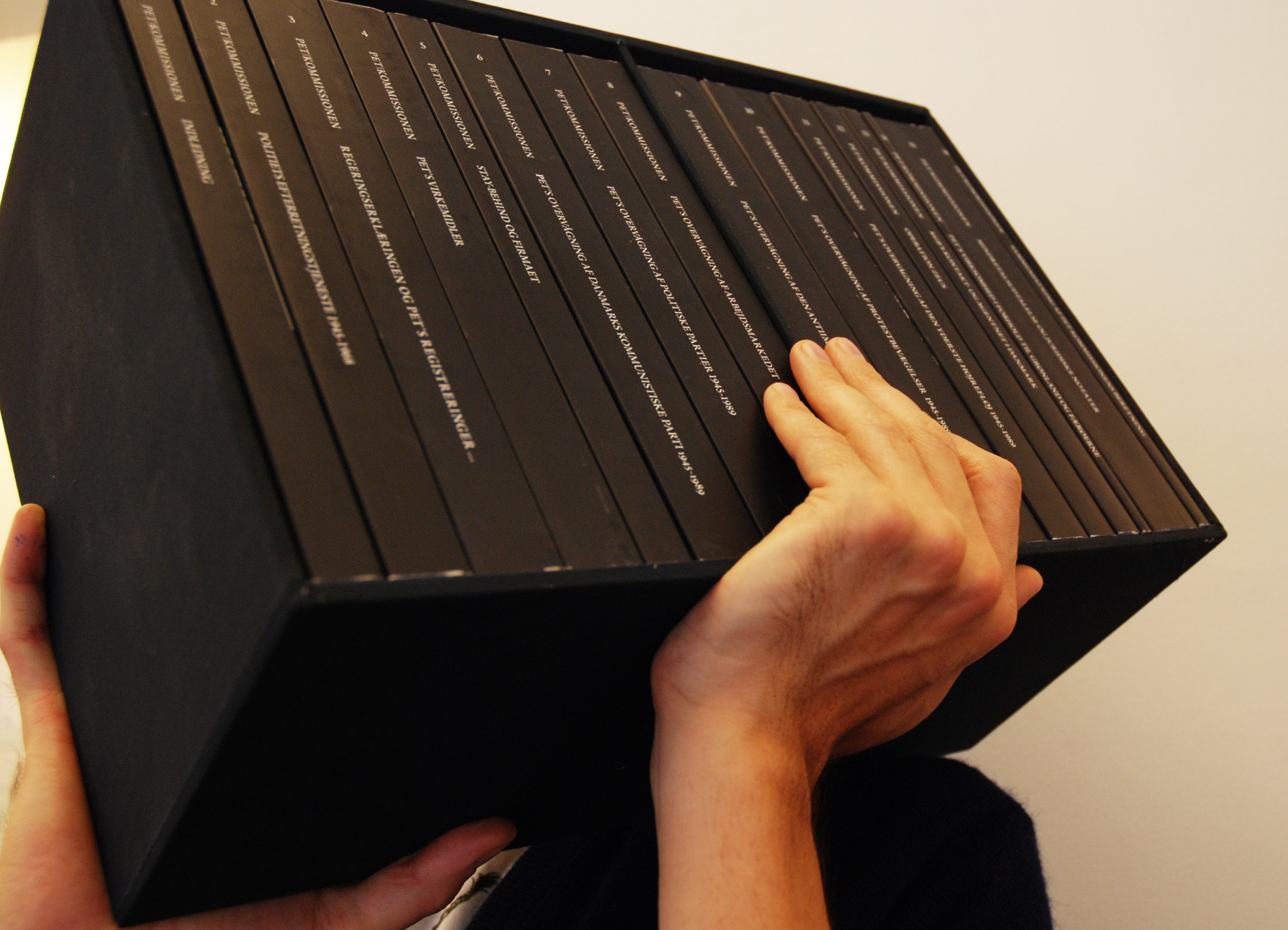 De enkelte bøger i den 16 bind lange rapport er i sort omslag med limet ryg i solid softback-kvalitet. Igen: Dette er et bogværk, man godt ville vove at tage med på stranden. Det kan klare mosten.