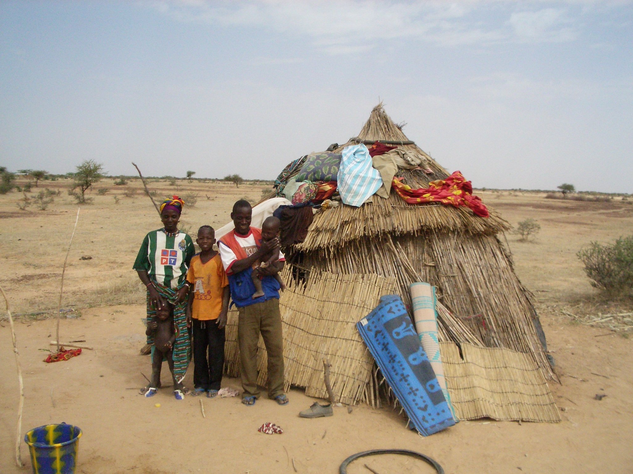 Mamadou og hans familie har bygget deres hytte af sivmåtter på et skelet af pil, så den kan rulles sammen og transporteres med tilbage til lerhytten i landsbyen, hvor familien er bosat resten af året.