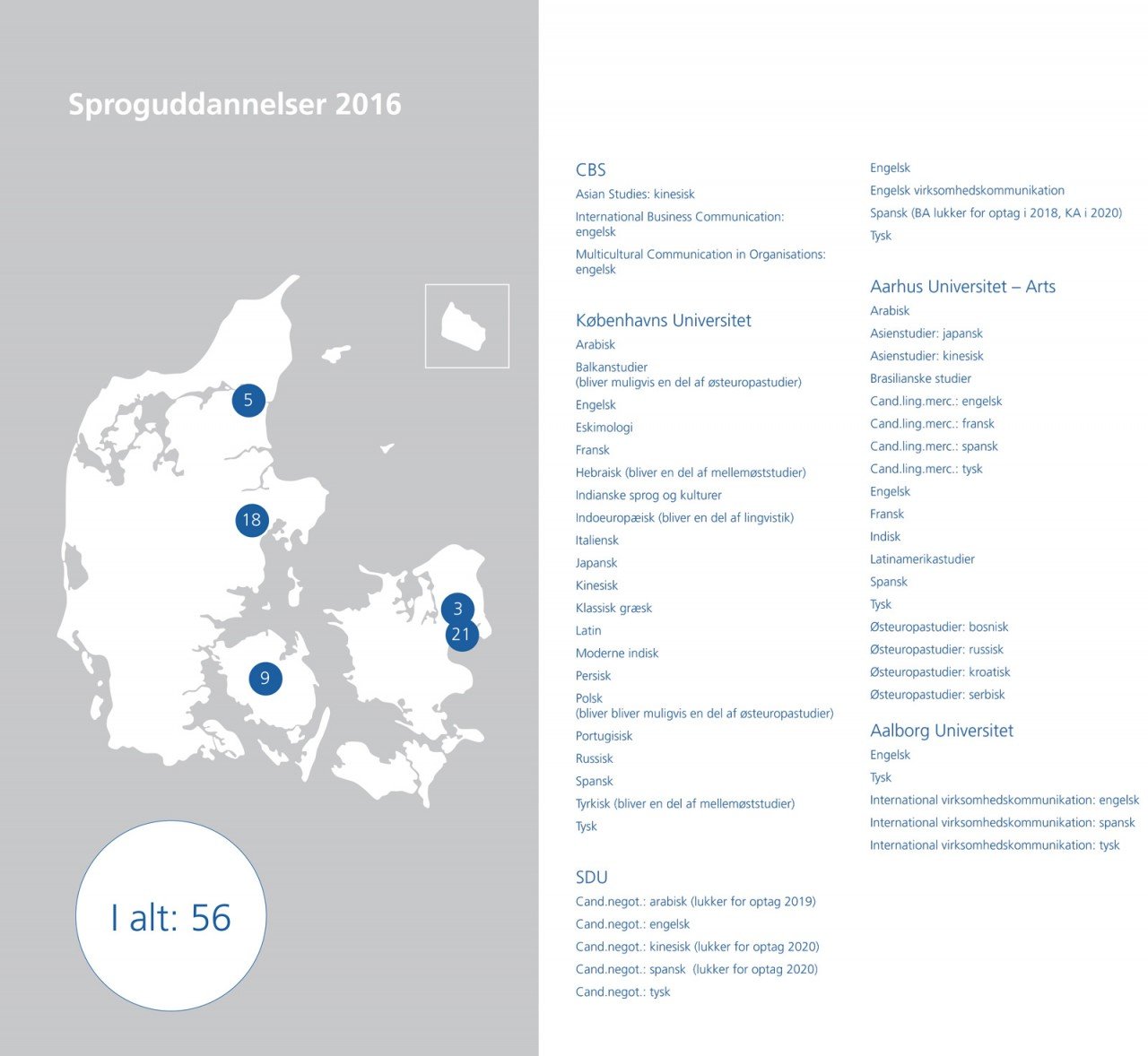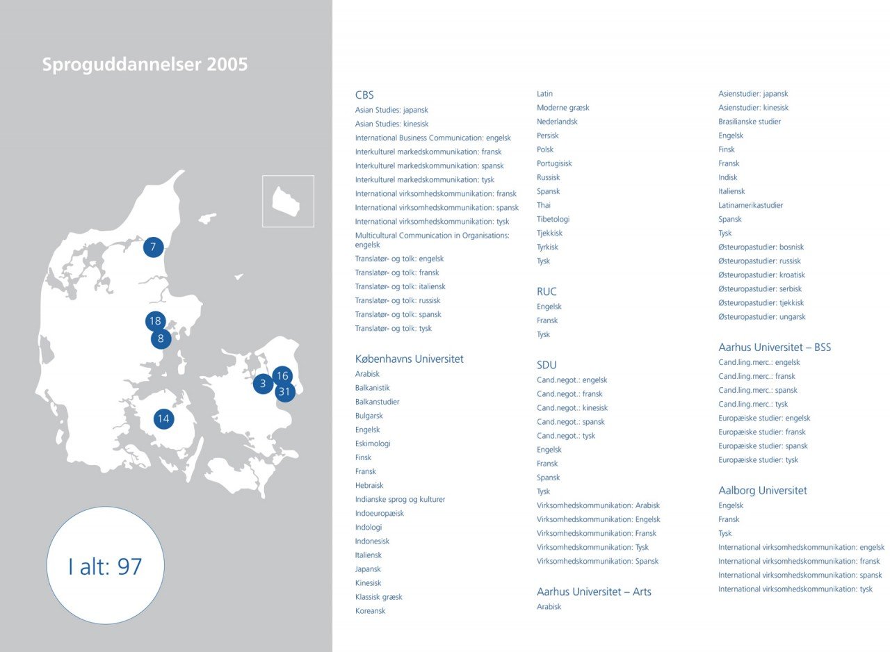 Desuden peger han på, at sproguddannelserne ikke kan løbe rundt økonomisk, så de er blevet lukket på stribe de sidste ti år. I 2005 var der 97 sproguddannelser på landsplan og i 2016 var det nede på 56.