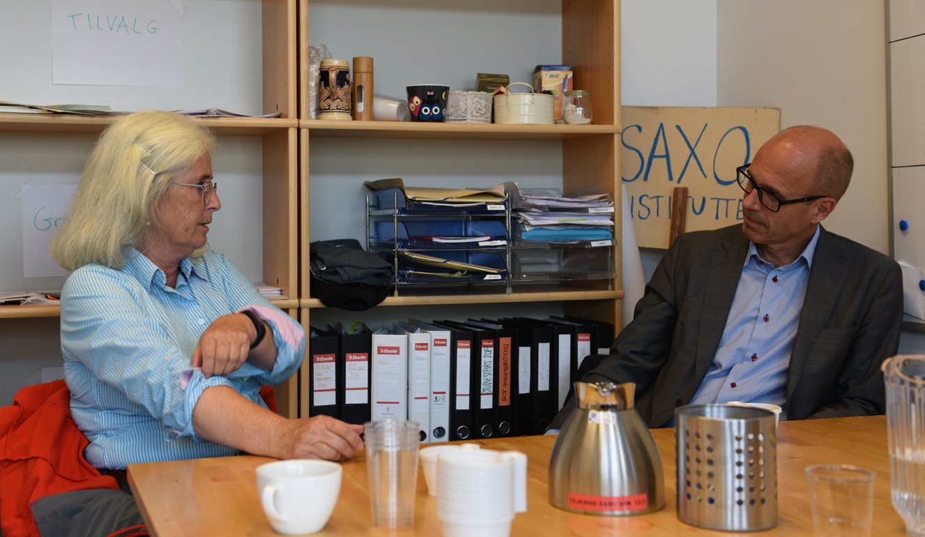 Studielektor Benedicte Fonnesbech-Wulff har netop lukket døren efter os og anvist rektor og Studenterrådets repræsentanter en plads ved et lille træbord, hvor hendes kollega Sheila Aakeson allerede sidder.