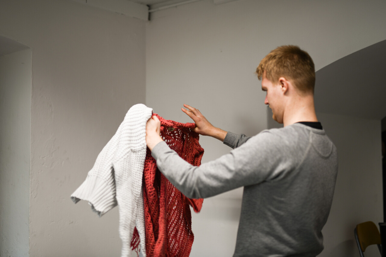 »Det er så vildt, hvor meget tøj, jeg har liggende derhjemme, som jeg bare ikke bruger,« fortæller veninden og holder en cardigan op, som hun engang købte på en rejse.