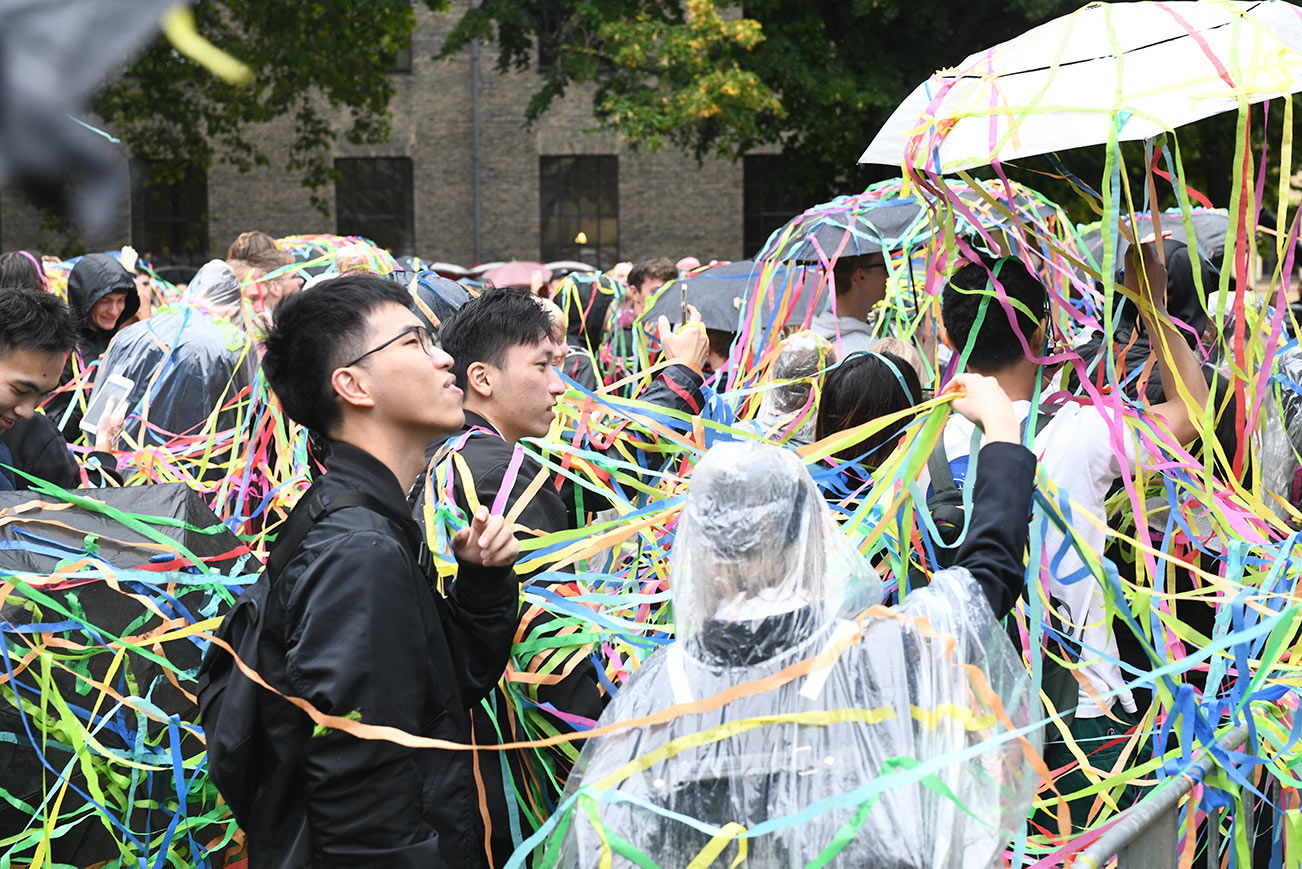 I samme sekund fyrer Lord Siva op for hittet Solhverv, mens et brag lyder og konfetti daler ned over de studerende sammen med regndråberne.