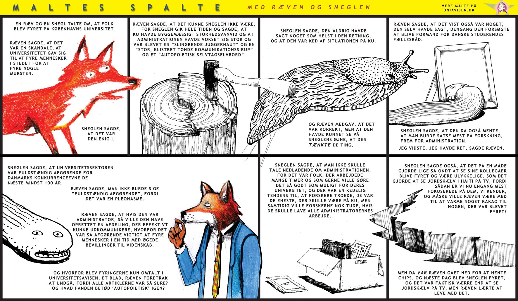 FYRINGSSPALTE - En ræv og en snegl diskuterer de økonomiske realiteter i årets første spalte. Snigpremiere på uniavisen.dk