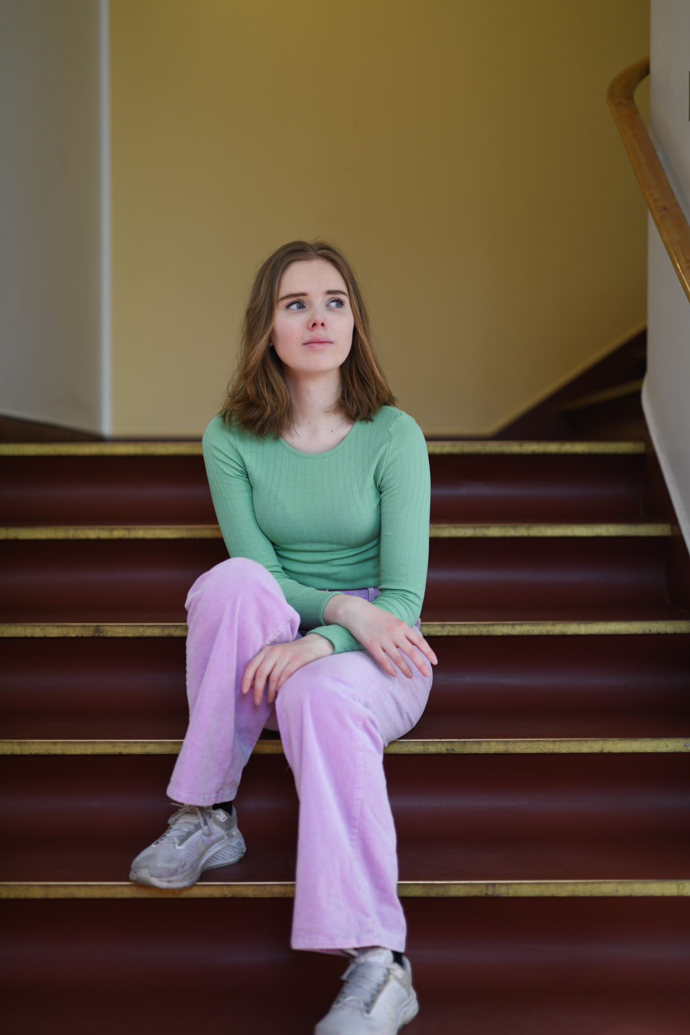 Sofie Riis Endahl er farverig. Eller også lyser den 21-årige studerende bare ekstra meget op mellem de mørke mursten i H.C. Ørsted bygningen på Nørre Campus, hvor hun læser en bachelor i Machine Learning og Datavidenskab.
