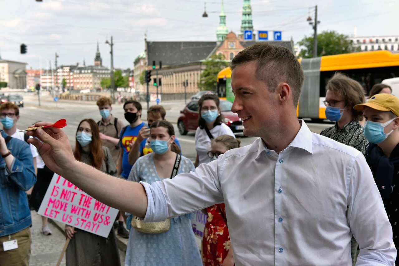 Flere ordførere kigger forbi, mens demonstranterne venter på ministeren. De tyller kaffe med havremælk og spiller deres spil. En dartpil flyver gennem luften. »Hvor skal Jura ende,« bliver der spurgt inden den rammer kortet. »På Sejerø!«