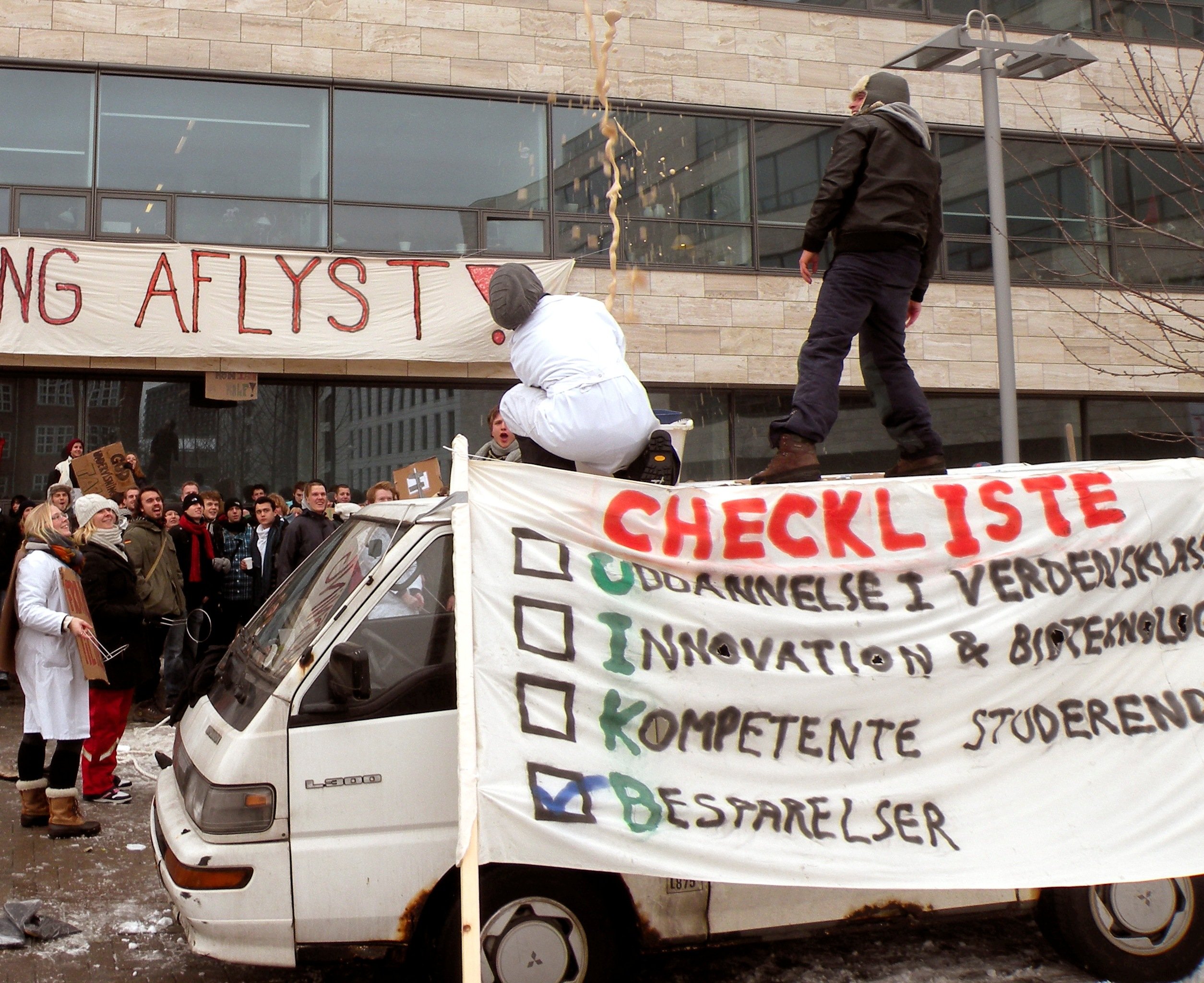 »Det er et sundhedstegn, at de studerende går på barrikaderne for deres uddannelse,« sagde han. Nils Strandberg Pedersen henviste også til en samtale, han havde haft med sin egen søn, der sammenlignede aktionerne med tidligere tiders studenterengagement.