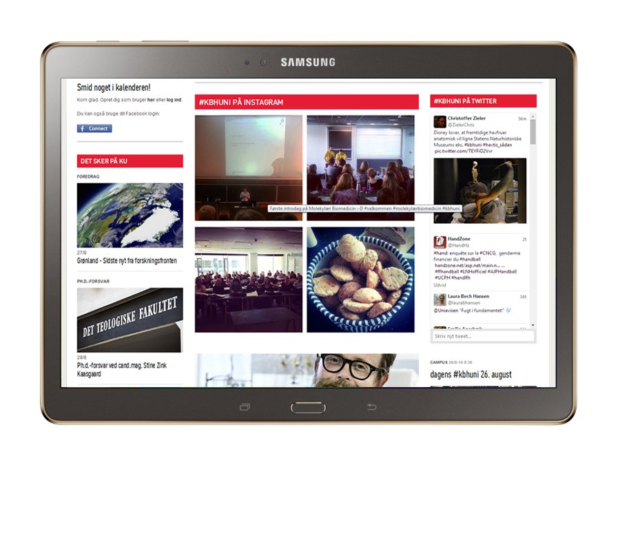Brug #kbhuni til at tweete og instagramme om dit liv på KU. Vi vil gerne høre fra nye studerende, rutinerede studerende, TAP’ere, VIP’ere, ja, selv Ralf. Vi præmierer de fire bedste #kbhuni-updates frem til 15. september med den nye Galaxy Tab S fra Samsung.