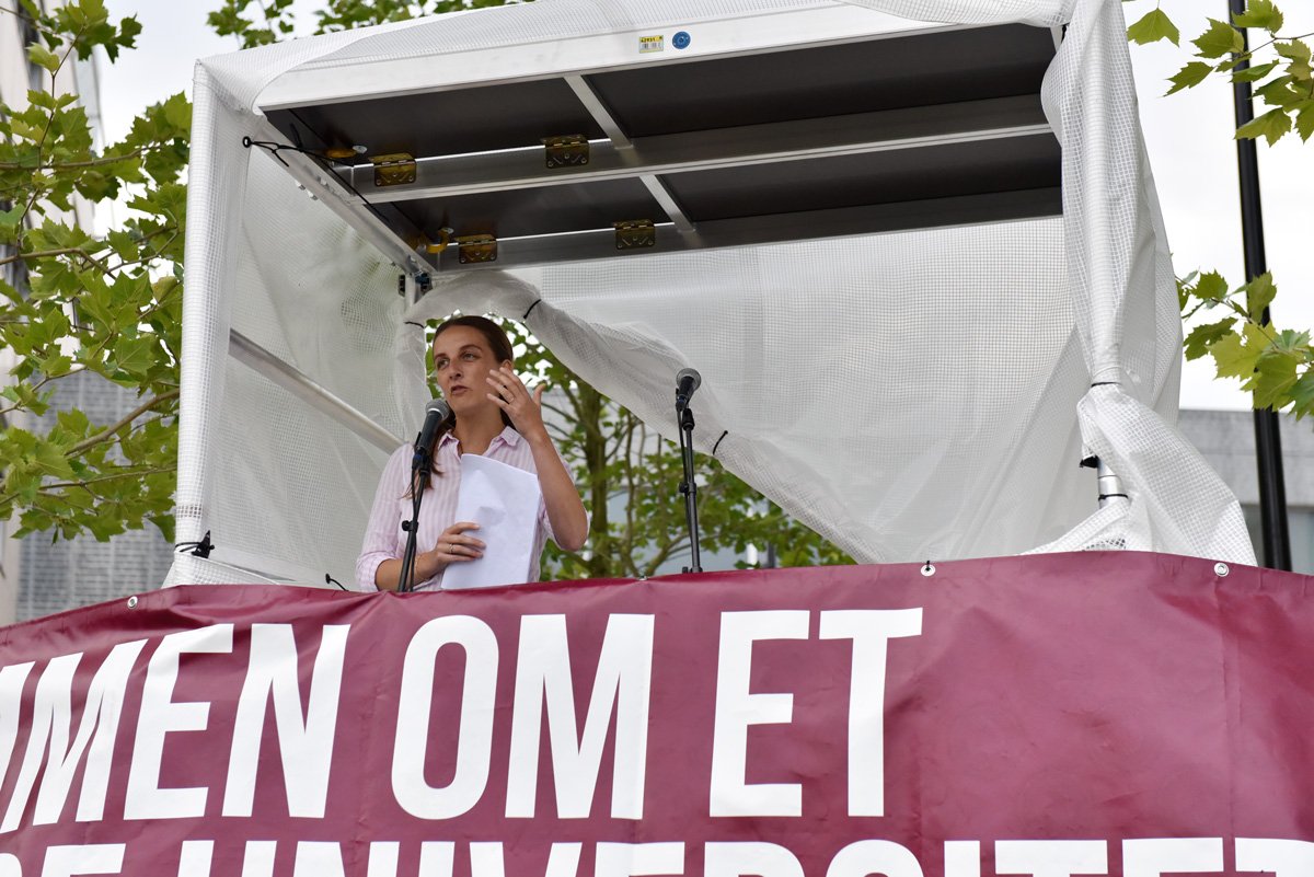 Vi skal være studerende og aktive samfundsborgere på én og samme tid. Og forhåbentligt kan vi bruge noget af vores tid her på universitetet til at forsøge at forstå og blive klogere på, hvad der sker i verden omkring og – og hvordan vi kan kæmpe imod de ting, som vi ikke vil stå inde for.