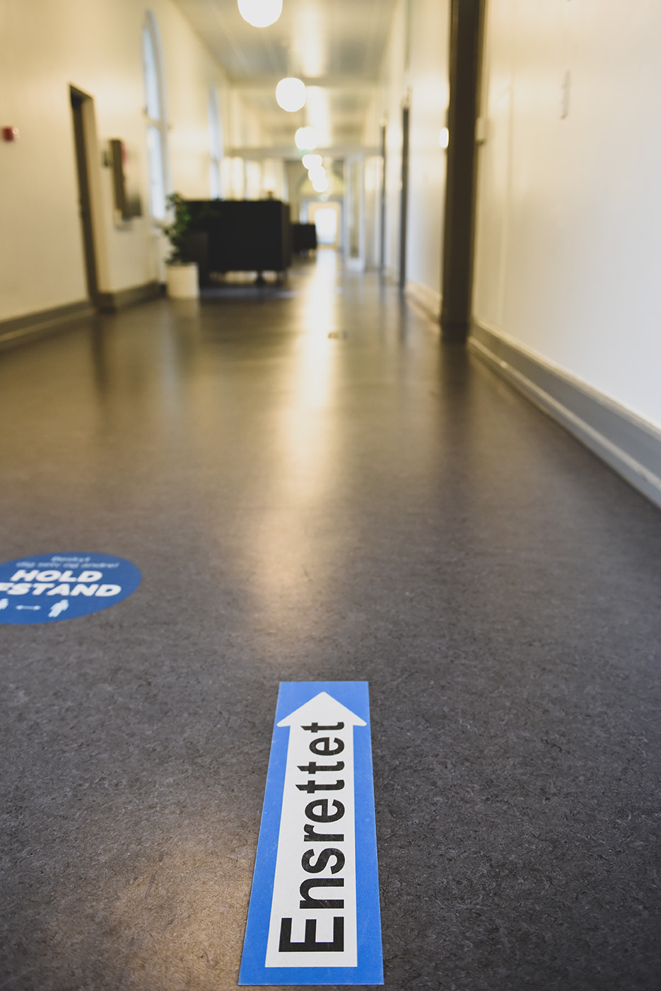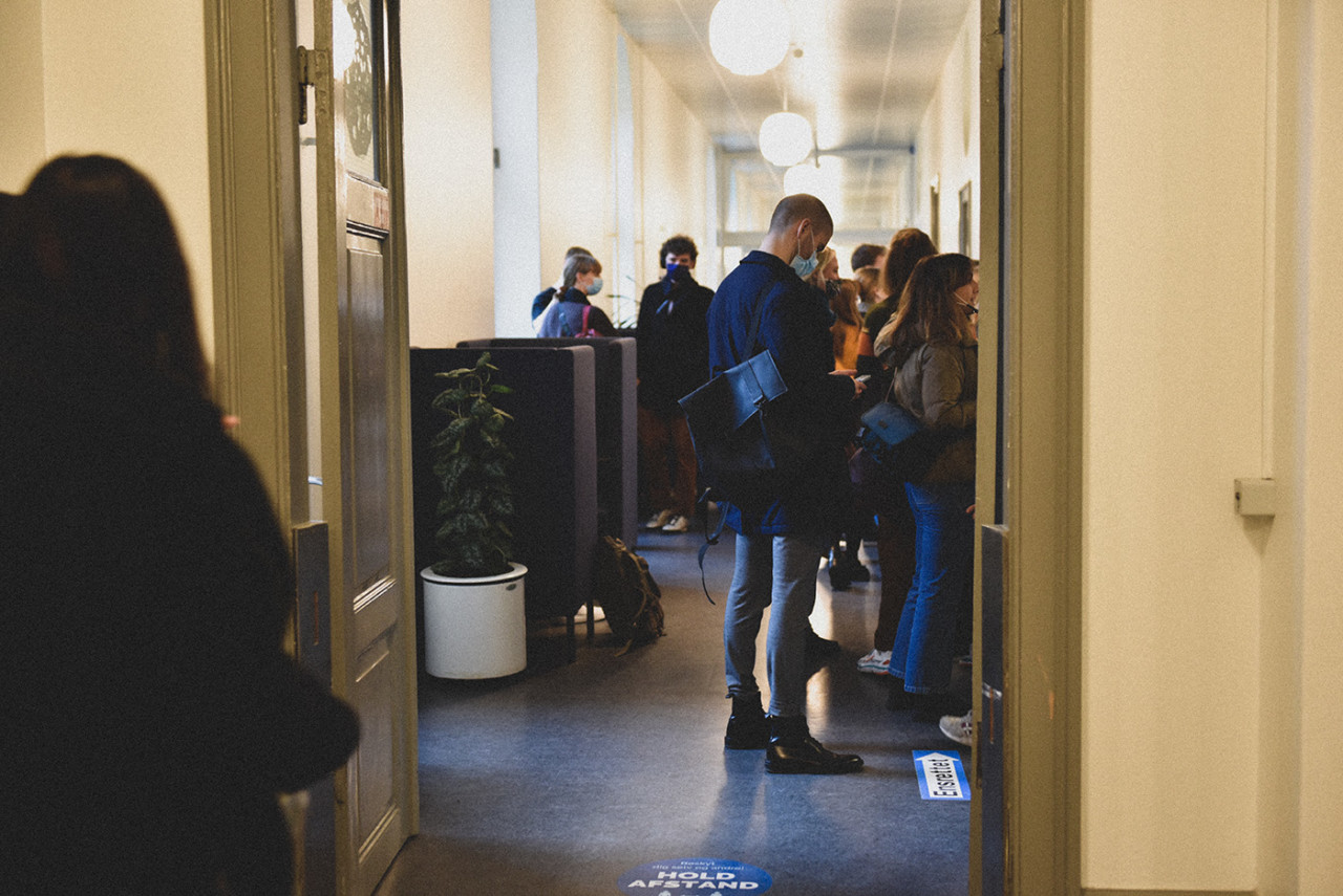Hvert fakultet sine coronaregler. På CSS har de indført ensretning på gangene i bygning 2, så undervisere og studerende ikke støder ind i og smitter hinanden. Men går man en tur på campus, kan man se, at retningslinjerne ikke altid bliver overholdt.